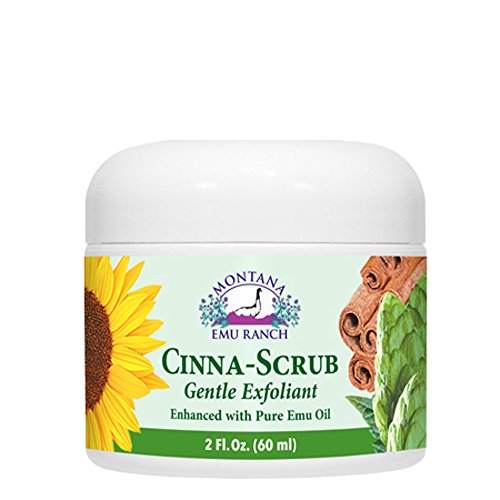 Cinna-Scrub Gentle Exfoliant 2 oz CreamProduct DescriptionA gentle exfoliate, combined with Montana Emu Oil to moisturize, Hops Extract to detoxify and Tea Tree Oil to rid bacteria. Our 100% natural exfoliant will leave your skin refreshed and glowing