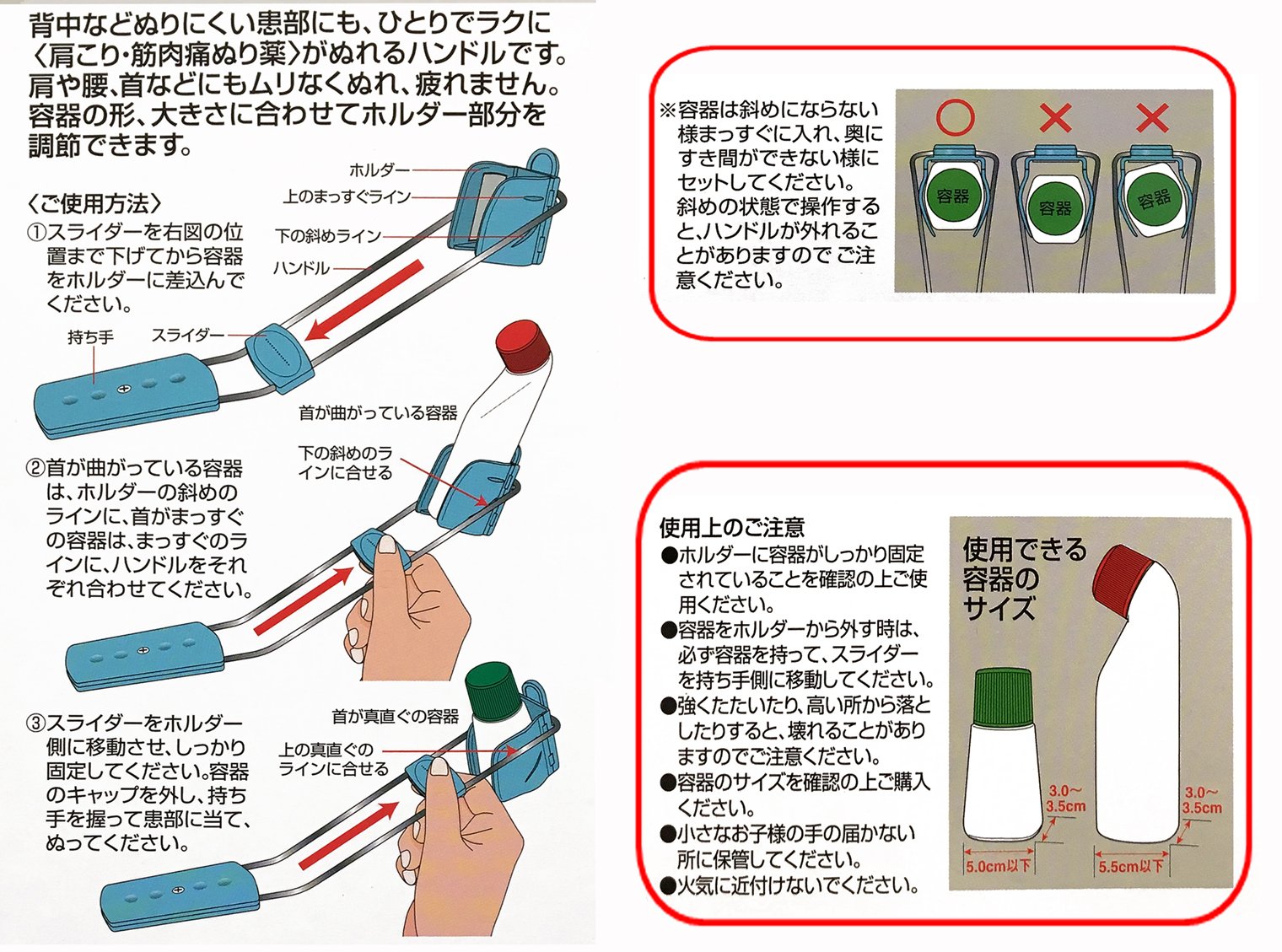 It corresponds to both horizontal type and straight type of the shape of the application container.