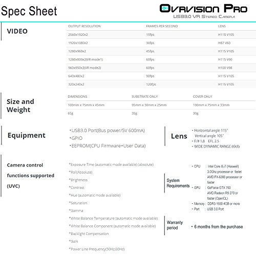 Ovrvision Pro realizes high FPS, high resolution, wide viewing angle, both-eye synchronization, and low delay.