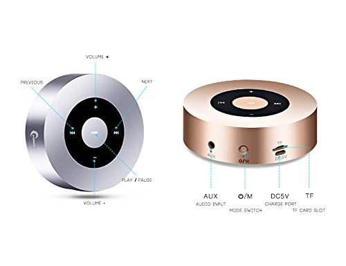 CHEREEKI Wireless Speaker Portable Bluetooth Speaker Mini Stereo Speaker Aluminum Alloy Portable Travel Outdoor Speaker Touch Operated Music Player with Micro SD TF Card Slot and 3