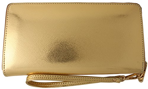 Product DescriptionLarge Pebbled Texture Zip-Around Wallet with Interior Card Case, Interior Zipper Pocket and Wristlet Strap0