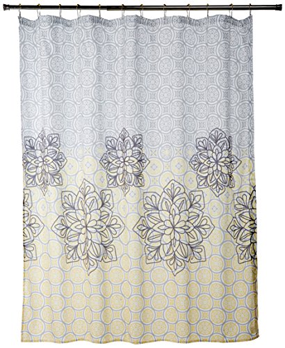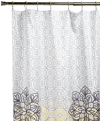 90° by Design Lab DES70-001 Jessica Printed Shower Curtain & Hook Set, 72 x 72", Yellow