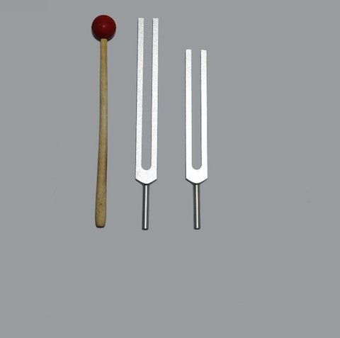 Our tuning forks are made from a special Aluminum Alloy that is heat treated giving them a very pure tone. The single fundamental frequency will remain constant for up to 15-20 years and the non-tarnishing material will not rust or corrode. Each fork is tuned by hand to an accuracy of /- 0.25% or better.