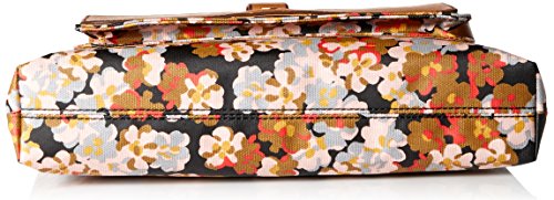 Floral-print top-zip bag featuring front pocket with contrast flap and belt-through strap accent