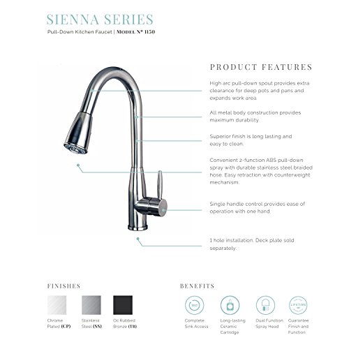 Builders Shoppe 1150SS 16" Single Handle Pull-Down Kitchen Faucet, Stainless Steel Finish
