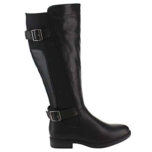 Binding : Apparel Product Description Tread across the streets effortlessly in under knee high boots with convenient full-length zipper.Featuring inset stretchable goring panel for fit,decorative double straps with buckles as well as dual foot bed that provides all day comfort and support. 0