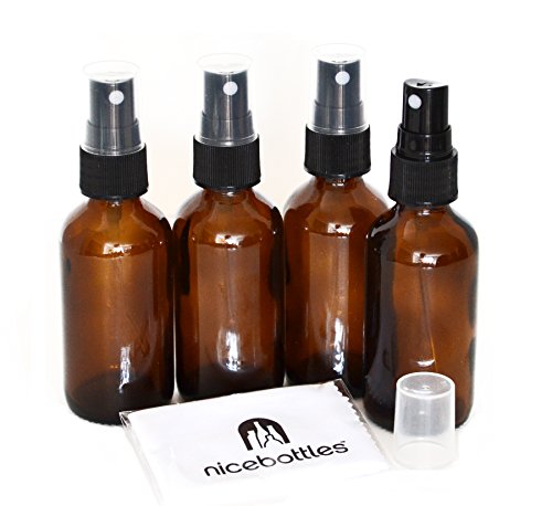 - Pack of 4 - Amber Glass Bottles with Black Fine Mist Sprayers and Dust Caps