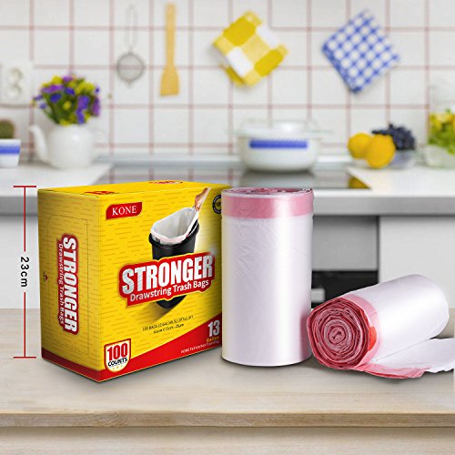 KONE Tall Kitchen Drawstring Trash Bags Strong Plastic Garbage Bag 13 Gallon - 100 Count
