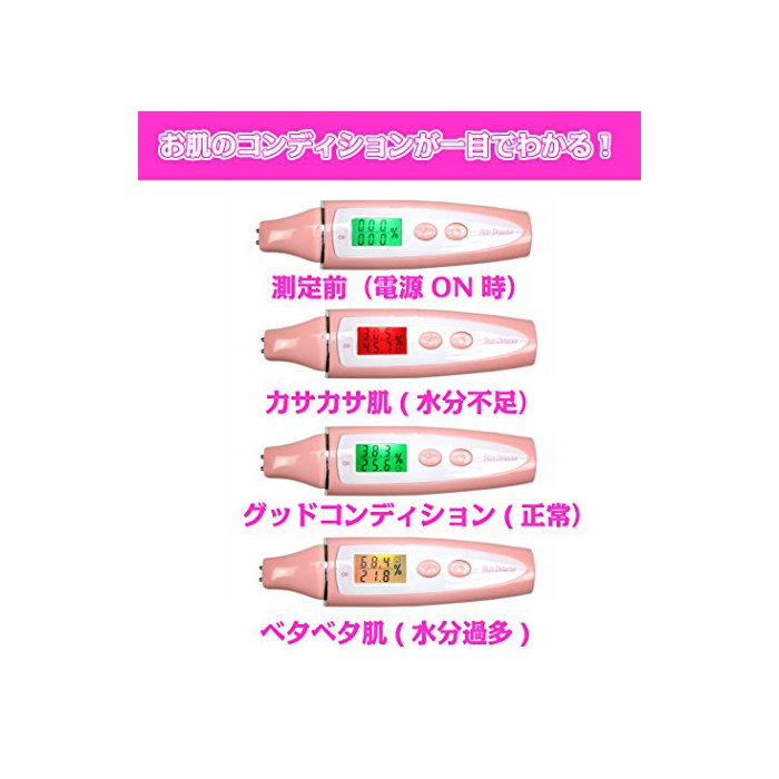 누구라도 간단!약3초에 피부의 체크!기질수분,기질유분의 체크가 이것 하나에 할 수 있어버리는.기질수분,기질유분은%표시에 매우 알기 쉽다.나날의 피부의 손질에,생기 발랄하게 깨끗한 피부를 Keep 있을 것입니다♪ 단4 형건전지2개 부속에서 도착한 그날로부터 곧바로 사용할 수 있습니다!