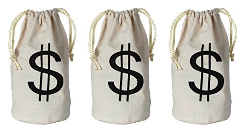 Product Description Beistle S57911AZ3 $ bag. The package contains 3 $ bags. They are made of an off-white cotton fabric with drawstrings. Each bag measures 8.5 inches tall by 6.5 inches wide. The "$" Sign is printed in black on the bags. Fill them with small candies or toys to give out as favors at a western themed party! 0