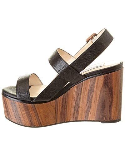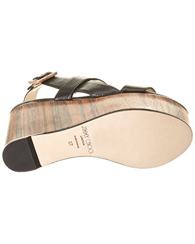 Studio : Jimmy Choo Publisher : Jimmy Choo Binding : Apparel Product Description Please note: Size selections are European. For US conversions, please reference size chart.. Made in Spain. Color/material: black grainy leather and wood. Design details: silver-tone hardware. Adjustable ankle strap with buckle closure. Lightly padded leather insole. Smooth leather sole. 4.25in heel. 2in platform. Please note: All measurements are approximate and were taken from a size 37; slight variations may occur. 0