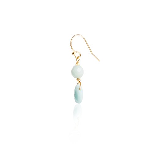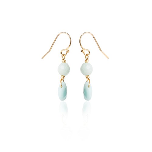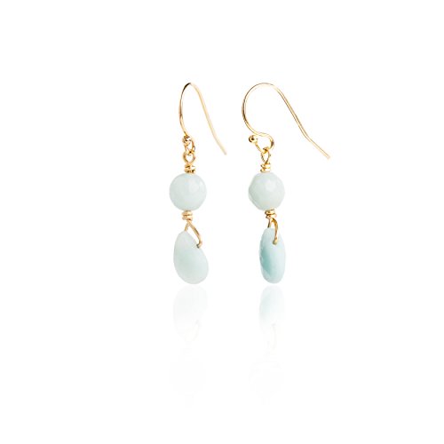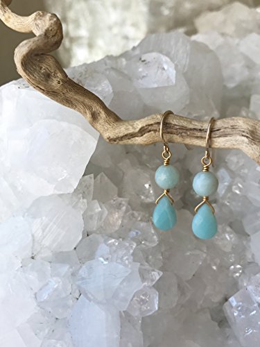 AMAZONITE DANGLE EARRINGS: made with a 6mm round faceted Amazonite bead and a 9x6mm faceted Amazonite teardrop, wire wrapped in non-tarnishing brass and hanging from14k gold-filled earwire hooks