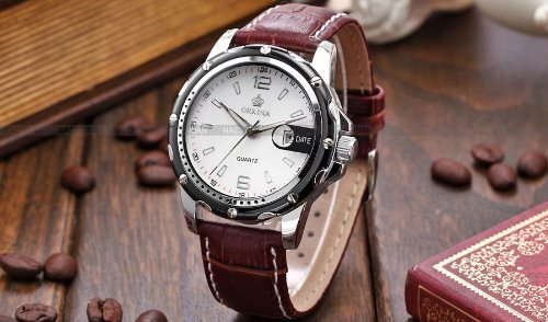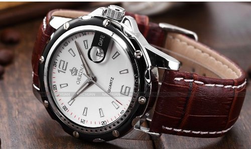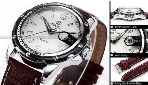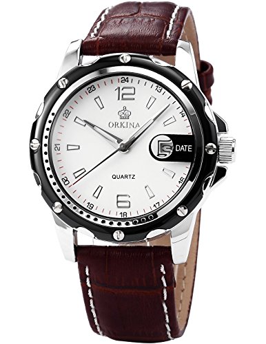 -. Title : (オルキナ) Orkinaメンズホワイトコーヒーレザー日付スポーツクォーツ腕時計贈り物ORK052