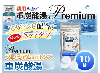 プレミアムホットタブ重炭酸湯は、従来の重炭酸ホットタブの重炭酸イオン、水素イオン、クエン酸のトリプルパワーにビタミンCがプラスされ、保湿効果がUPした潤い重炭酸湯プレミアムホットタブです。プレミアムホットタブ重炭酸湯をお風呂に入れて浸かると、有効成分が温浴効果や清浄効果を高めて血流を促進し、ぽかぽかの温まりが持続されます。(40リットルに1錠が目安です)泡が消えると効果がなくなってしまう炭酸ガス入浴剤とは違い、効果が24時間持続する重炭酸イオンの入浴剤です。重炭酸イオン、クエン酸、ビタミンCの相乗効果により、保湿性を損なわずに、皮脂汚れ、ミネラル汚れを落とすので美肌・美髪ケアにもぴったりです。ぬるめのお湯(36℃~38℃)のお湯でもしっかりと身体が温まるので、季節を問わずにお使いいただけます。水素イオンがカルキを除去するため、お湯が柔らかくなり、肌が敏感な方や赤ちゃんにも安心です。また、専用のシャワーヘッドとお使いいただくと、シャワーでもお気軽にホットタブをお楽しみいただけます。
