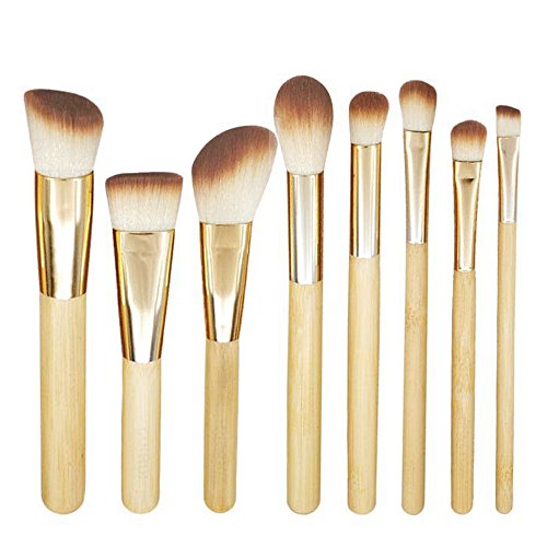 Cosmetics Makeup Brushes 8 Pieces Bamboo Handle Synthetic Hair Professional Face Powder Foundation Eye Shadow Make Up Brush Set (As shown)