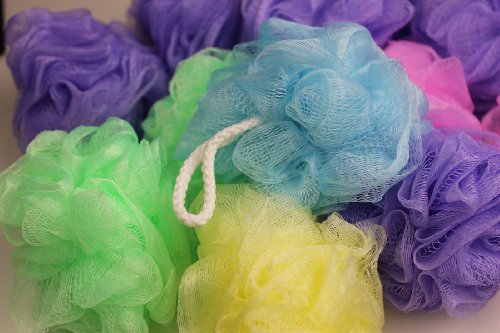 Use with your favorite shower gel or body wash for revitalizing exfoliating skin therapy from your [JUMBO Pack of 12] Assorted Pastel Colors - Bath Loofah-Loofa-Loufa-Luffa-Pouf [4" Inch Diameter]