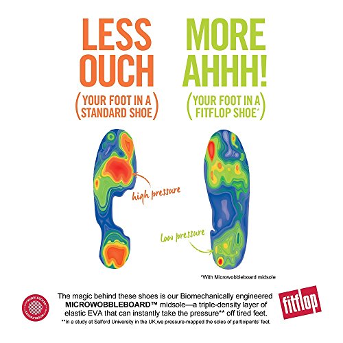 Product Description Fitflop's best-selling boho-cool clog, updated with minimalist moccasin design lines, is THE slip on for lounging, lazy days, quick jaunts, coffee calls, with slim cut skirts or skinny jeans (striped socks, sweats - whatever you want to wear). For an instant, amazing, around your foot comfy feeling, on our ergonomic triple-density midsole. They're MOC-nificent! 0