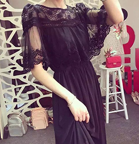-. Title : (ミニマリ) minimali レディース ドレス ケープ風 レース フリル マキシ丈 切り替え ロング パーティー ワンピース