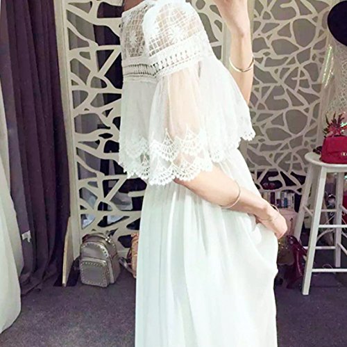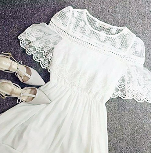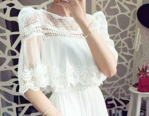 -. Feature : ちょっとしたお呼ばれパーティーや、リゾートシーンにもピッタリ!セクシーで可愛いドレスが入荷いたしました。シンプルなワントーンドレスは女性の気品を引き立ててくれるワードローブに欠かせないアイテムです。 / まるでケープを纏ったようなレーストップスにうっとりさせられます。デコルテや腕部分の透け感がセクシーで女性らしい印象に。トップス裾はスカラップレースで可憐さをプラス。体型カバーにも一役買っています! / ウエストゴムを施した切り替えから広がる美しいギャザースカートは、歩くたびにふんわり揺れるフレアラインがとってもエレガント。全身ホワイト一色で清潔感と爽やかさがあり、スラリとして好印象を与えてくれます / 文句なしに清楚な白のドレスは全体的に透け感があり軽やかな着心地の一着です。華やかなアクセサリーとヒールを合わせてとことん女性らしく着こなしてくださいね。膝上あたりまで裏地がございます。 / 【サイズ】S・M・L・XL 【素材】コットン? ※安心・安全・便利なAmazonプライム(P.R.Ime)のFBA倉庫発送で、24時間対応・お待たせしない 即日発送・送料無料にてお届けいたします。