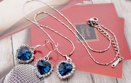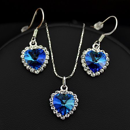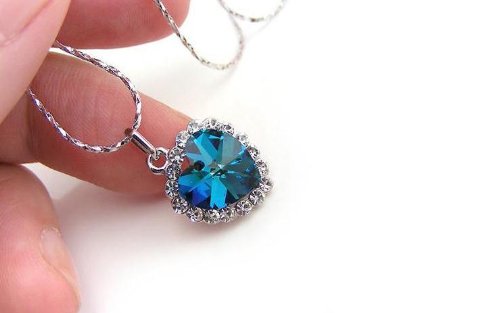 18k white gold plated, stone colour - blue, link chain, pendant size - 13 x 13mm, chain length - 46cm, net weight - 15gm. Please see the main image closely, there is a tiny hole on the heart crystal, it is not defect, just the way it is.Feature