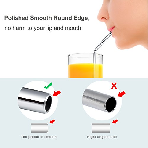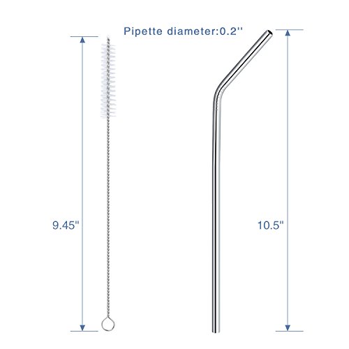 - BEND SHAPE & POLISHED SMOOTH EDGE : These extra long drinking straws are 10.5 inches tall and 4mm in diameter. The straws are designed to be practical, they're angled with bend shape to make you easy to sip. The ends of the straw are polished to be super smooth, it will never hurt your lips, teeth and tongue, safer to use and won’t scratch your tumbler.