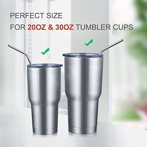 - PERFECT SIZE & WIDELY USE:The angled straws are 1/4 inch diameter and 10.5 inch height for perfect drinking, weight only 15g each piece. Compact size of the drinking straw makes it very easy to store, place in a purse and carry on the go! Fits all 30-Ounce and 20-Ounce Cups / Mugs, from plastic tumblers to Yeti Ozark Trail mugs,etc. These stainless steel straws are perfect for water, smoothies, tea, any other beverage.