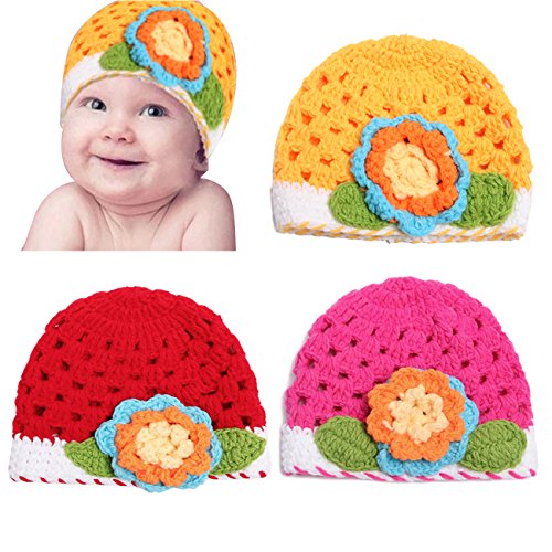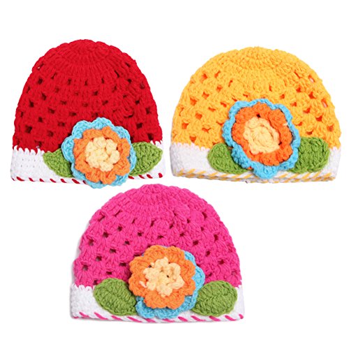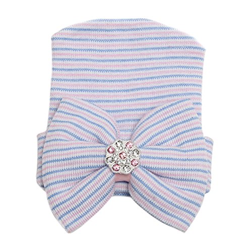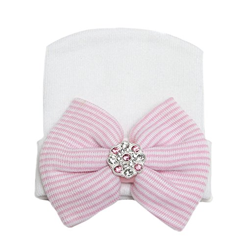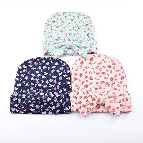 BQUBO Newborn Hospital Hat Infant Baby Hat Cap with Big Bow Nursery Beanie (Pack 3)