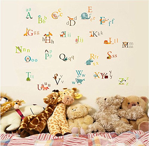 Wall Sticker Decal English Alphabet Animal Letters Kids Room Decor Mural Nursery Daycare and Kindergarten DIY Removable