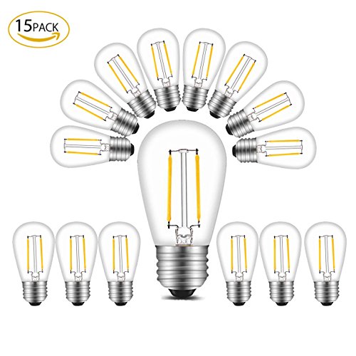BRTLX S14 LED Edison Filament Bulb 2W Warm White 2700K 11W Incandescent Equivalent for Outdoor Commercial Grade String Lights Hanging Sockets Replacement Bulb Pack of 15