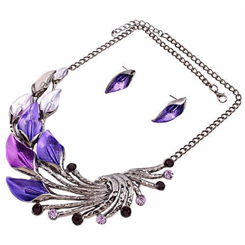 -. Title : Susenstone Women's Purple Peacock Festoon Bib Necklace Stud Earrings Set