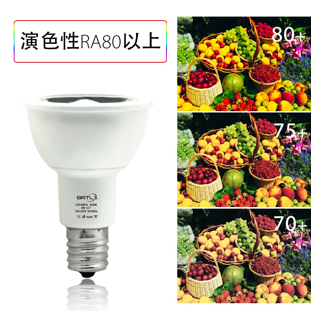 With high color rendering LED of Ra 80 or higher, colors are naturally reproduced cleanly.