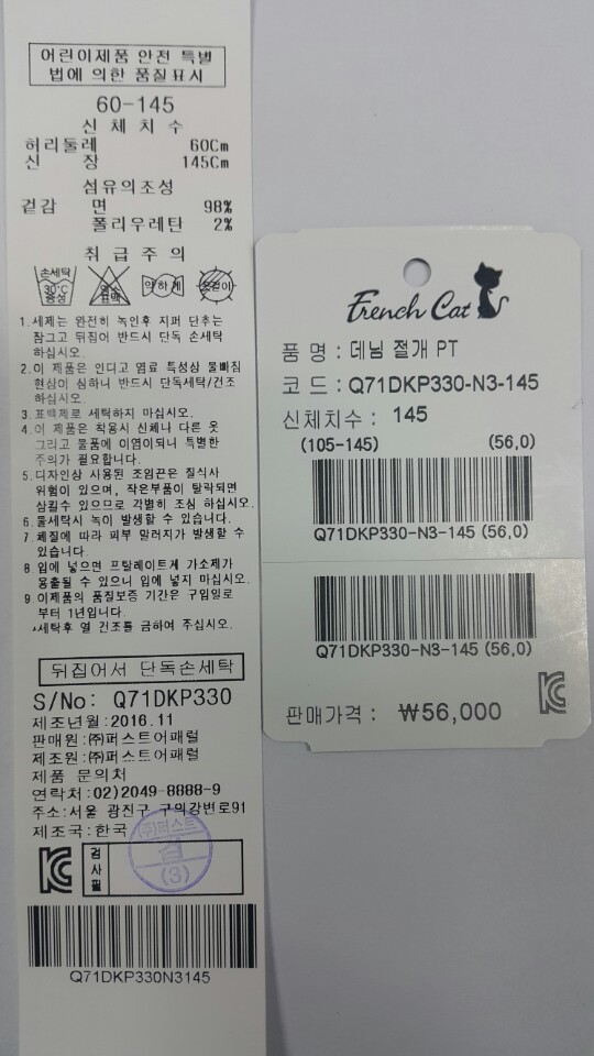소재-면 98% 폴리우레탄 2%