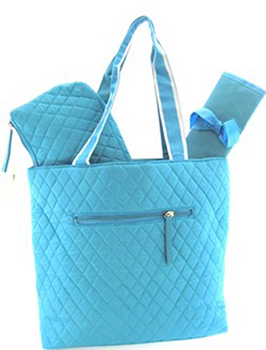 - Title : 3 Piece Solid Color Quilted Diaper Bag Set w/ Changing Pad & Cosmetic Purse (Blue)