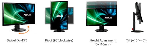 As with most ASUS displays, the VG248QE has an ergonomic design, with tilt, swivel, pivot and height adjustment to give users a comfortable viewing experience.
