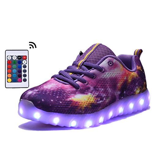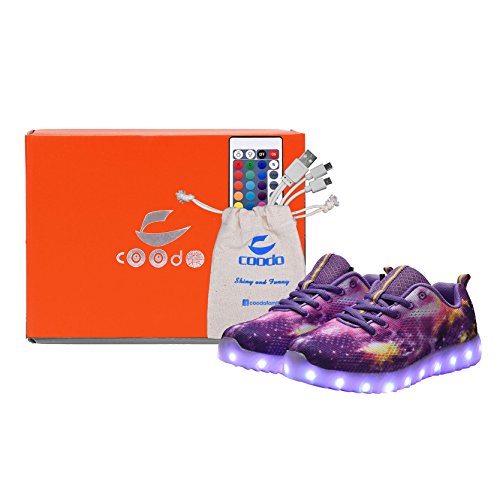 COODO CDR2006 Toddler Kids LED Shoes With Remote Control Girl's Flashing Light up Sneakers PURPLE-13