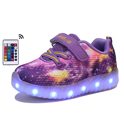 COODO CDR2006 Toddler Kids LED Shoes With Remote Control Girl's Flashing Light up Sneakers PURPLE-12