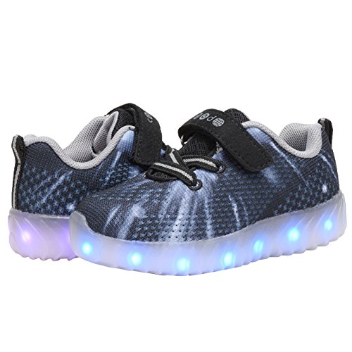 COODO CDR2006 Toddler Kids LED Shoes With Remote Control Boy's & Girl's Flashing Light up Sneakers BLACK-12
