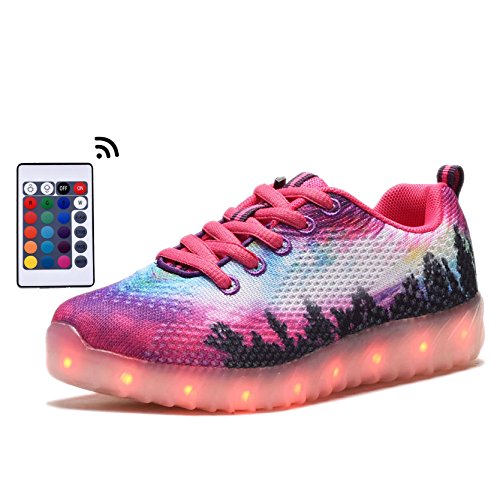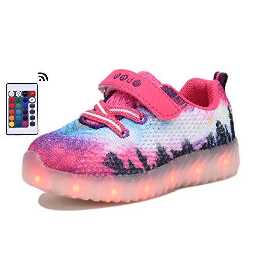 COODO CDR2006 Toddler Kids LED Shoes With Remote Control Girl's Flashing Light up Sneakers PINK-13