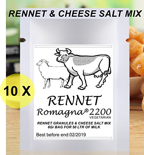 10 X RENNET ROMAGNA Granules Mix 6g Pack Vegetarian Rennet & cheese salt mix For 50 L Milk …