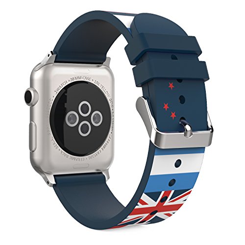 -. Title : MoKo Apple Watch Band 38mm, Soft Silicone Replacement Sports Strap + Watch Lugs for Apple Watch 38mm 2015 Series 1 & 2016 Series 2 All Models, Dark Cerulean & Patchwork Flag (Not fit 42mm Versions)