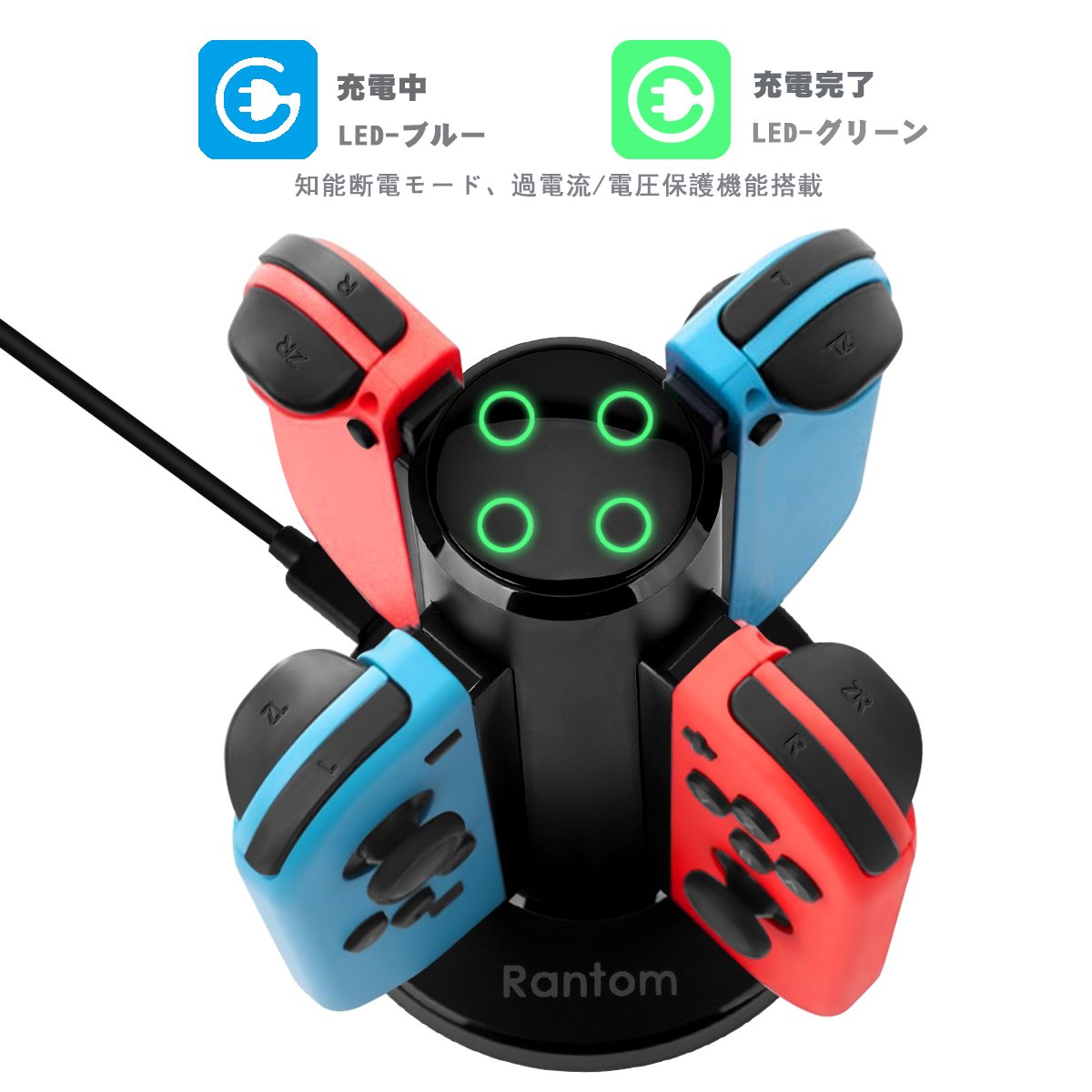 ★充電指示ランプ搭載:充電中はブルーライトが点灯して、充電完了の状態はグリーンライトが点灯します。充電の状態が一目で分かります。安全基準に基づき製造しております。 知能断電モードも付き、Joy-Conコントローラーの安全を確保します。