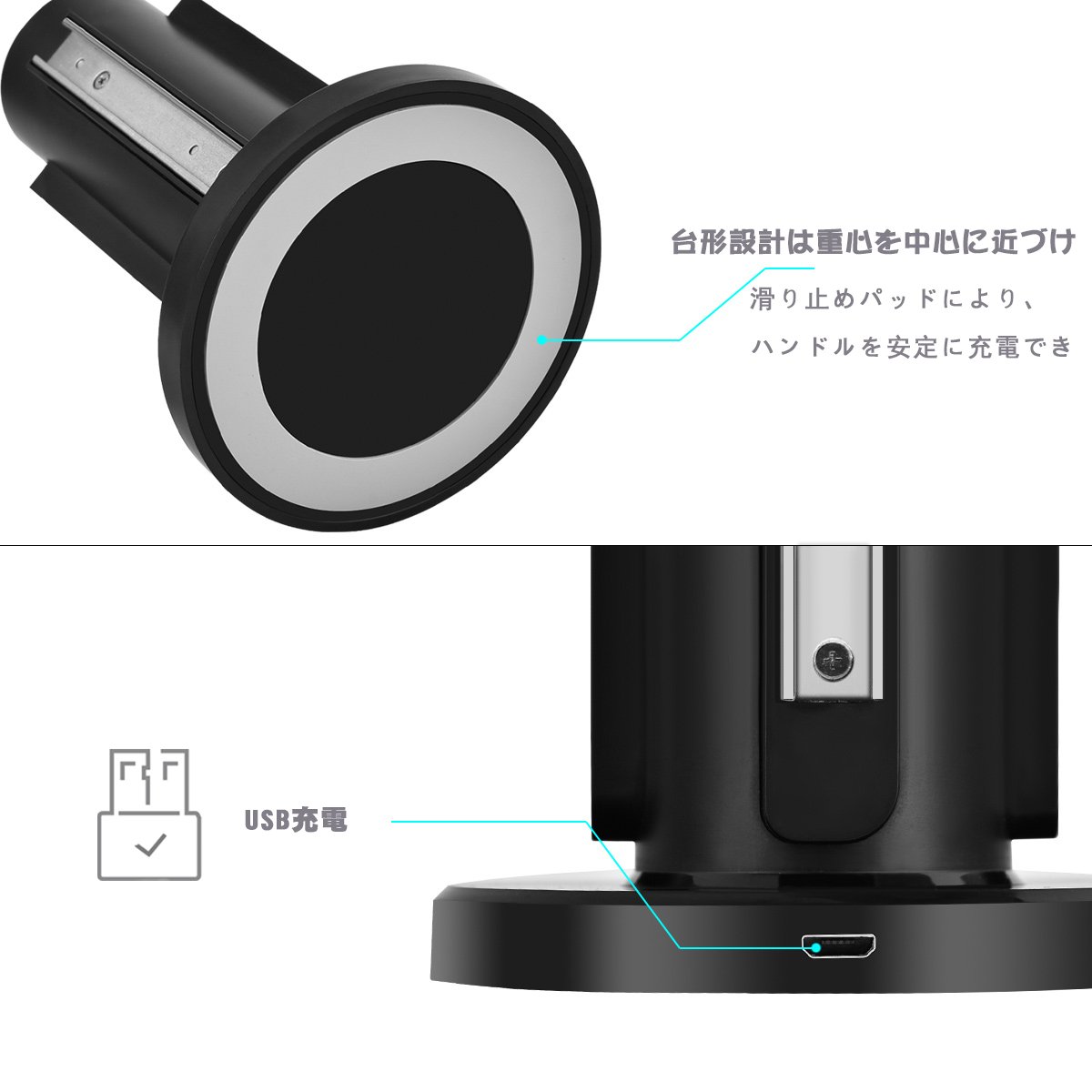 ★滑り止めパッド:充電器の底面は滑り止めパッドにより、ハンドルを安定に充電することができます。台形設計は重心を中心に近づけ、スタンドは安定性に優れており、Joy-Conをスムーズに装着できるよう設計されているため、簡単にJoy-Conの充電が可能です。