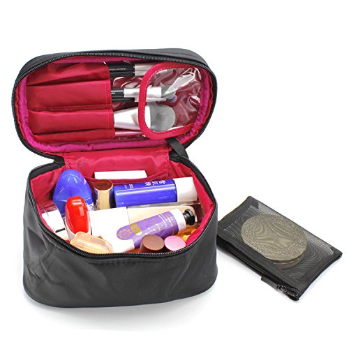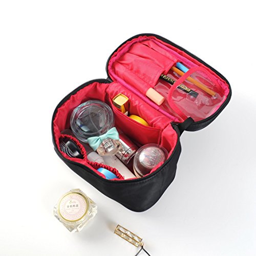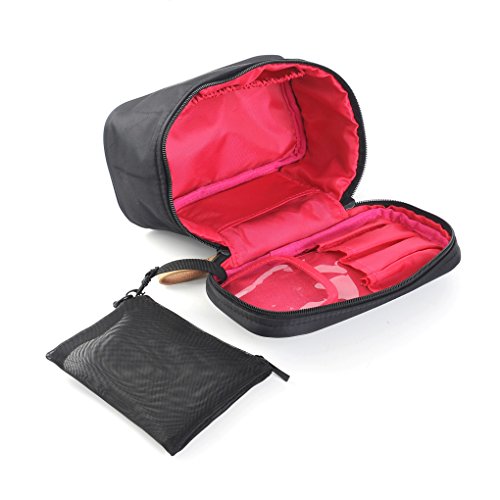 - Portable Travel Makeup Bag, made of high quality nylon fabric, water proof, easy to clean, anti-wear. Inside is red lining with thick sponge, Could carry most of your cosmetic and give a good protection.