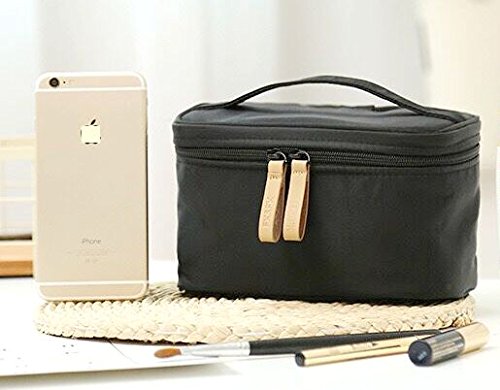 - The portable travel makeup bag have a top handle to make it portable and easy to handle.Exquisite stitching, smooth two-way zipper make this bag be easy to use and comfortable.