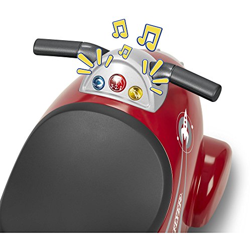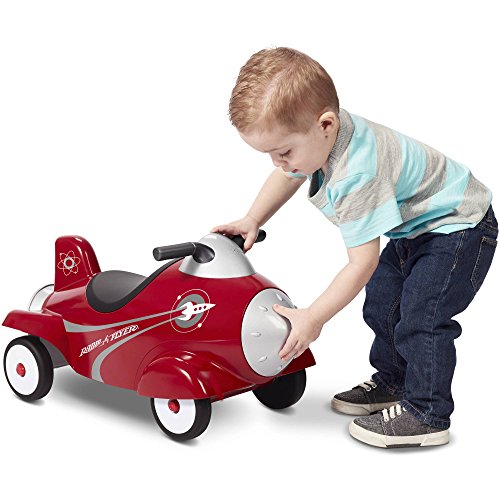 -. Binding : Toy -. Brand : Radio Flyer -. Color : red -. EAN : 0740647773232 -. Feature : Foot-to-floor ride-on encourages kids to be active / Helps develop motor skills / Realistic astronaut and space sounds / Flashing lights on dashboard; Requires 3 AA batteries (included) / Clicking nose cone; Cool retro styling -. IsAdultProduct : 0 -. Label : Radio Flyer -. Manufacturer : Radio Flyer -. MPN : 600X -. PartNumber : 600X -. ProductGroup : Toy -. ProductTypeName : TOYS_AND_GAMES -. Publisher : Radio Flyer -. Studio : Radio Flyer -. Title : Radio Flyer Retro Rocket Ride-On with Lights and Sounds, Red -. UPC : 740647773232