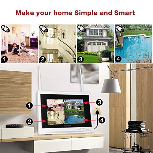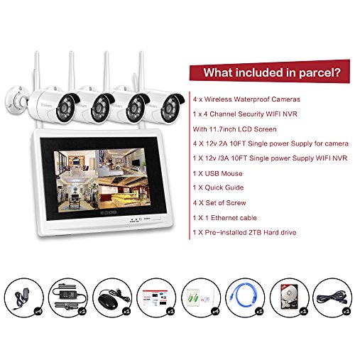 -. Title : Yeskam Wireless Home Security Camera System 1080P with 11.7" LCD Monitor 4 Channel 2.0 Megapixel Screen CCTV Surveillance Kit Built in 2TB Hard Drive Full HD Recording