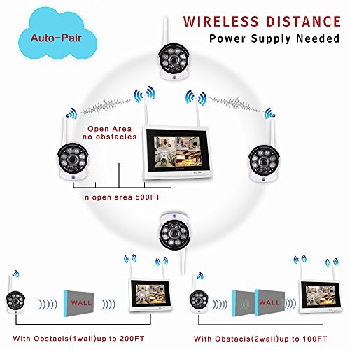 -. Feature : All-in-one Wireless HD System with built-in 11.7" Monitor with 2TB Hard Drive. convenience to place anywhere only need power supply,making sure it in your cameras wifi cover.(Not touch screen) / Noted: All cameras and 2 IN 1 NVR Recorder with Screen need power supply cable,Ture Plug & Play with Auto-Pair Technology Just Plug the Power start to stream the video feed and the system works recording even without any Internet connection. / Easy live View & remote snapshot recording playback all your cameras on mobile App IP PRO and computer software with WiFi or 2G/3G/4G network anytime anywhere, simple to connect,only download App and Scan add device ID. / 1080P HD Quality See in stunning clarity and sharper details with 2.0 Megapixel(1920 x 1080) cameras and watch live streamed or recorded videos.6 Infrared New Generation LED Array that allow you to see up to 100ft in the darkness.Waterproof IP66 Metal Case. / Yeskam Camera uses high quality chipset, the resolution and wifi connection which is so far the Best and Most applicable WiFi camera kit,also best offer with 3 Years Quality Warranty, professional engineer support team will answer your questions within 24 hours.