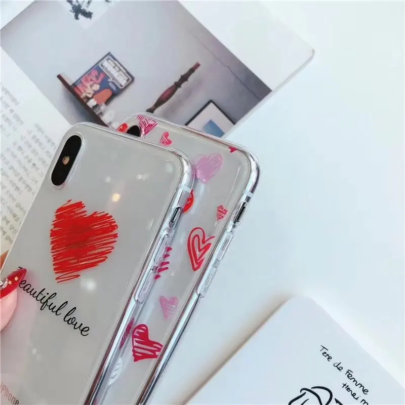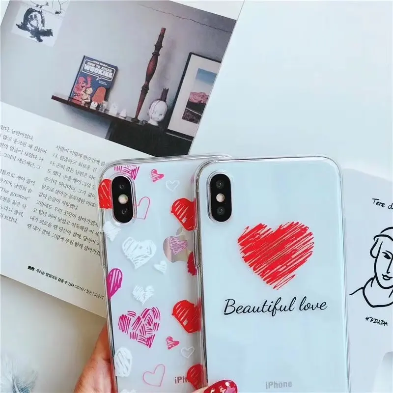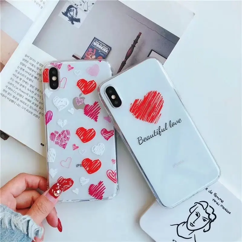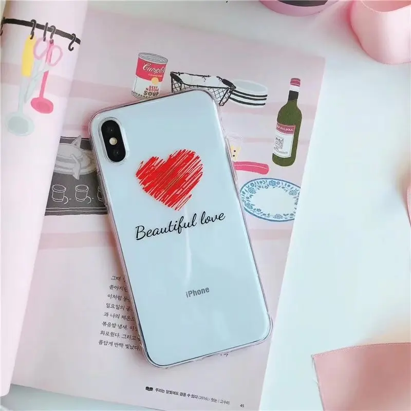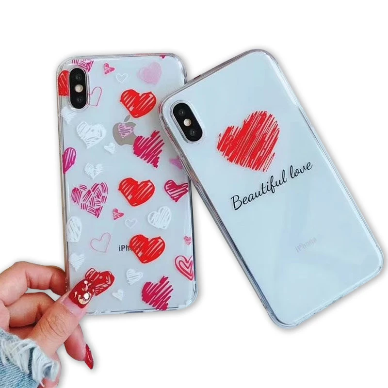 Style 1:Beautiful lovely transparent red love heart letter pattern phone shell