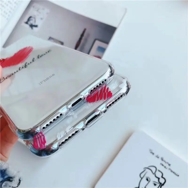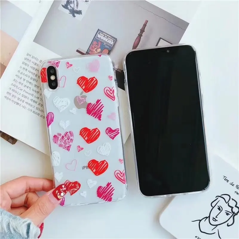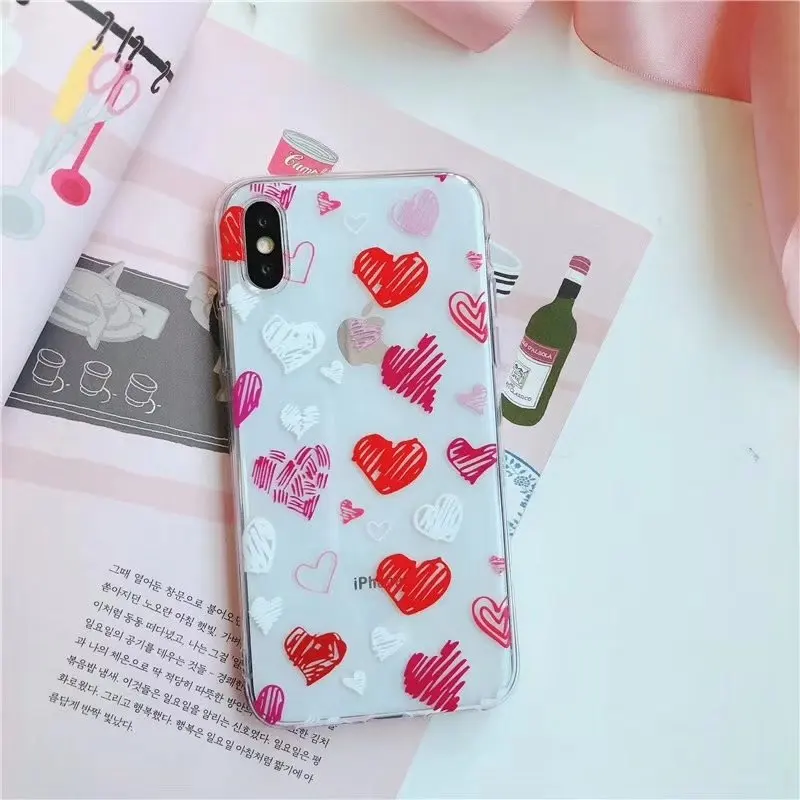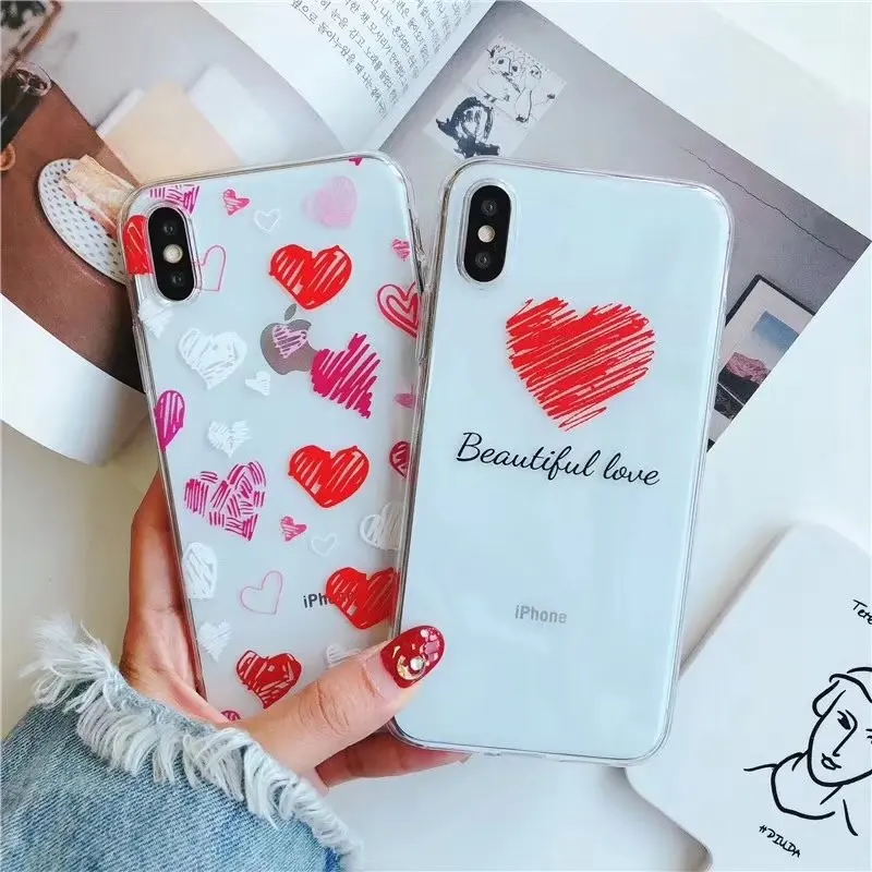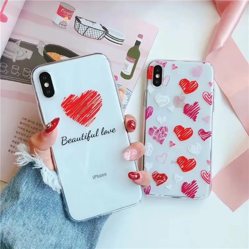 Style 1:Beautiful lovely transparent red love heart letter pattern phone shell