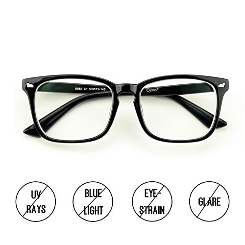 -. Feature : Lens width: 53mm, Lens height: 45mm, Bridge: 15mm, Frame total: 135mm, Interpupillary distance: 63mm / Blue Light Filter Myopia Lenses Glasses are designed for the nearsighted and the shortsighted / Block 99% the Blue Light and UV rays, contributing to correct visual acuity / You can still enjoy your device from the comfort of your bed and get a restful deeper sleep / "Cyxus" is a trademark owned by "Cyxus Technology Group Ltd" which is the FDA registered company and the unique manufacturer of "Cyxus"